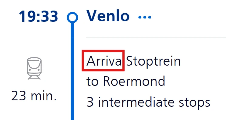 You can use the journey planner to search for trips and trains. For each train in a connection, the operator is indicated.